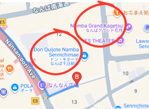It’s very close to Namba Grand Kagetsu and Don Quijote.